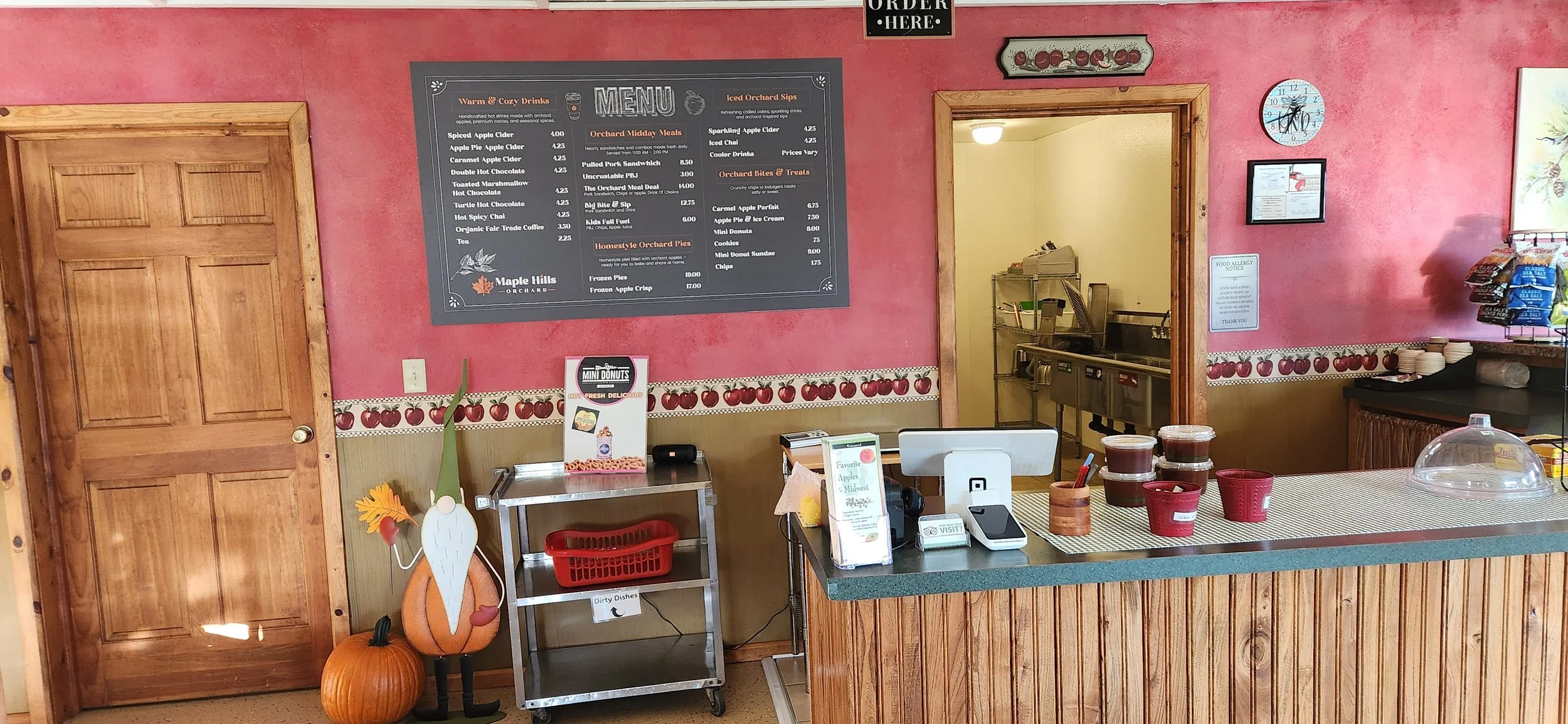 Come and explore the beauty of Maple Hills Orchard, where families can experience the tranquility of nature and enjoy the many varieties of apples, raspberries, pumpkins, squash, and grapes. Our Apple House store filled with local artists' works, children’s books, kitchenware, and more. Refresh yourself with a mug of flavorful apple cider and grab a bite to eat while you explore the breathtaking trails around the orchard. Afterwards, stay and have some fun at our outdoor activities. There is something for everyone!